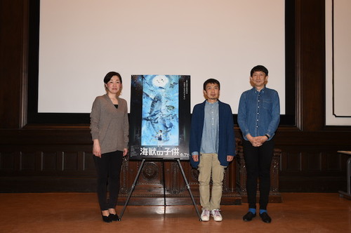 自然世界への畏敬を独自の漫画表現で読者を魅了し続ける漫画家・五十嵐大介の「海獣の子供」を映像化。大注目の映画『海獣の子供』が6月7日(金)に全国公開となります。![]() そして、4月17日(水)に、<アートから見る“海獣”たち!映画『海獣の子供』×「大哺乳類展2」スペシャルトークイベント>を実施いたしました。国立科学博物館にて大好評開催中の「大哺乳類展2」とのコラボイベントである今回のイベントは、漫画「海獣の子供」原作者の五十嵐大介、映画『海獣の子供』監督の渡辺歩、そして国立科学博物館動物研究部脊椎動物研究グループ研究主幹で「大哺乳類展2—みんなの生き残り作戦」を監修した田島木綿子博士が登壇。歴史ある国立科学博物館 日本館の講堂にて、<漫画>で、<アニメーション>でと、お二人ならではの“哺乳類をアートで表現する”という視点のお話や、田島博士が感じた『海獣の子供』について、作中の海棲哺乳類の生態についてなど、濃密トークを展開しました。