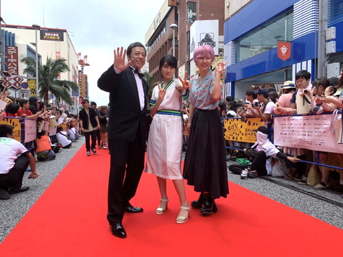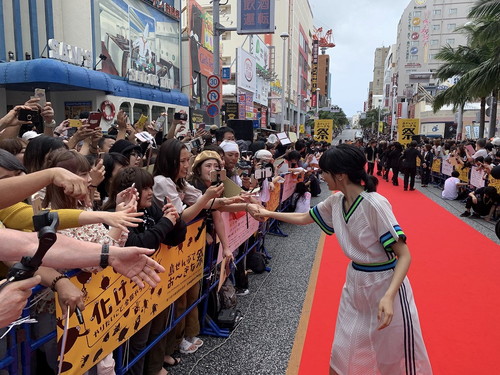 公開に先立ち、「島ぜんぶでおーきな祭 第11回沖縄国際映画祭」に特別招待作品として上映され、主演の松本穂香さん、板尾創路さん、そして、ふくだももこ監督が参加。19日に舞台挨拶を行いました。 そして! 最終日となる21日には、レッドカーペット・イベントが行われ、大勢のファンに囲まれ、ファンサービスを行いました。 日付:4月21日 |