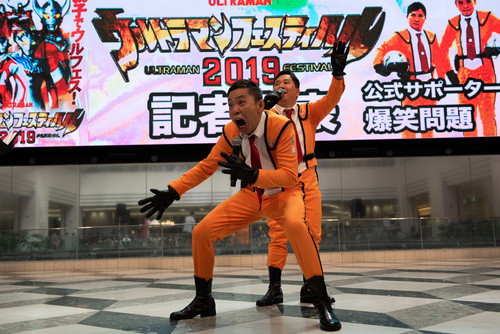 前売券発売日の5月11日(土)に、サンシャインシティ アルパ B1 の噴水広場にて発表イベントを開催。 ウルトラマンタロウ、ウルトラの父でウルトラマンショー 昭和からの ウルトラマンファンで、平成最後の「ウルトラマンフェスティバル」公式サポーターを務めた爆笑問題(太田光、田中裕二) が新元号・令和でも公式サポーターに就任。 科学特捜隊 特別隊員として隊員服姿で登場し、3元号に渡るウルトラ愛 と共に「ウルトラマンフェスティバル 2019」の見どころを紹介しました。