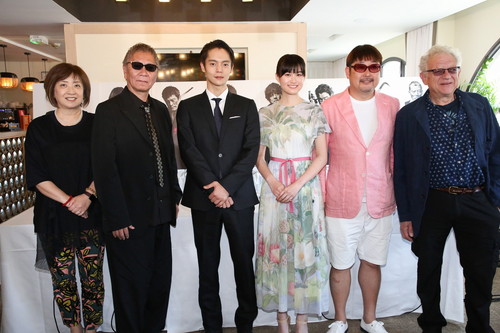 朝の雨が嘘のように晴れ、爽やかな気候の元カンヌの地で行われた本発表会見。今回初めてのカンヌ参戦となった窪田さんは![]() 窪田さん:カンヌという聖地に連れてきてもらい感無量です。作品はパワフルでスピード感がすごくて、観る者の目を惹きつける力があり、自分自身も熱くなるものがありました。世界の人に観てもらいたい。カンヌは空気が違って、映画ファンも世界各国のメディアもたくさんいて…とても気分がいいです!テンション上がってます! と笑顔をみせた。同じく、初のカンヌ参戦である 小西さん:今ここにいることが夢みたい。こんな機会滅多にないと思うので一生残る経験になると思います! と初のメディア取材の場に登場するとあって緊張の面持ちを見せながらも、 小西さん:この作品が初のカンヌの地で感無量です。三池監督に連れてきてもらい、私も感無量です。 と笑顔でコメント。今回、カンヌ映画祭は2年ぶりで7回目の参加となる 三池崇史監督:みんなでつくり上げた作品が、自分たちを昨日と違う景色へ連れて行ってくれる。映画とは夢のあるもの。映画を観客と共に観るというのは格別な時間でありとても楽しみ。ジェレミー(プロデューサー)からも率直な感想もらいながらつくっていた。今の時代にしかつくれないものが、素晴らしいキャスト共につくれた。自分たちのつくりたいものがこの時代につくれて光栄。 と作品に対する自信をみせた。 ■再びカンヌの地に舞い戻ってきて ■「ケータイ捜査官7」以来、10年ぶりの主演での窪田さんとの再タッグについて 三池監督:国民的スター窪田が主演をやってくださって、いいやつだな、と(笑)。彼とは「ケータイ捜査官7」で出会った。ハードなスケジュールの中、カンヌに駆けつけてくれて非常に嬉しいし、やっぱり“映画の人間”なんだと思った。 窪田さん:三池監督とは右も左もかわらない時にお会いしたんですが、第一印象は、すごく怖い人(笑)1年間もんでいただいて、指導というよりは現場で感じさせていただいた。『十三人の刺客』(10)の時も、先輩方の背中を見ながら、葛藤しながら、もっと頑張りたいと思っていました。「ケータイ捜査官7」の時、“あいつを選んだ理由がわかる”と言ってくれたのがすごい印象に残っています。ずっとやりたかったボクサー役で、三池監督が言ってくださった10年後にまた、三池さんの世界に没頭できたことは幸せでした。映画やTVに出させていただいている中で演者としてフラストレーションが溜まることが、役者さんは誰しももっているかと思うのですが(笑)、今回そういった感情がみんなこの作品を通して爆発していて…観ていただいたらわかると思います。日本の映画はこうあるべきだと思うし、こういう生き方をしたいと思いました。感無量です。 ■数多くのオーディションからこの役を勝ちとり、三池監督の作品に参加して 小西さん:オーディションの時から私の想いを聞いてくださって、選んでいただけたのかなと感じています。三池さんは演技のテクニックより感情を引き出してくれました。私らしさを重視して演技指導してくださいました。 ■その他のキャストの方々と共演した感想 窪田さん:他の共演者の方とほとんど絡んでいないんですが(笑)でも、皆さんそれぞれに誰も被らないカラーがあり、一緒に芝居をしている中で、本能的なものを非常に感じ、それがとても印象に残っています。 小西さん:他キャストの方と絡むシーンがあまりなかったのですが、映画やテレビで見ていた方々と共演させていただいたので、とても光栄で、夢みたいでした。ベテランの方々の演技をみて、自分も負けてられないな、と思いました。 ■このキャスト陣と本作を作られた感想や手ごたえ 監督:役者で生きていこうと思う人間の根っこには、アウトロー的な血が流れてると思う。今回出演した役者たちは、それぞれの役に共鳴していたと思うし、だからこそリアリティが生まれた。今回の作品を通して、役者というのは、人間が抱える“喜び”と“ストレス”を生かすという職業なのだと、改めて感じた。そういう要素は、アウトロー的な映画をつくる我々にとってはとてもいい状況。そんな環境を与えてくれたプロデューサー陣、東映には感謝。観た全員が、この映画好きだな、だけど自分の演技はもっとやれる、といったような新たな発見や高みを見出される作品に仕上がったと思う。内野は今作の役と比べるとすごいギャップだけど(笑) 窪田さん:三池さんの人柄は昔から変わってないです。“遠くない親戚のおじさん”のような存在。三池さんがカンヌに行かれている記事を見る度に自分も行きたいな、三池さんと今度はいつできるんだろと思っていましたけど、やるべきことを自分はやるんだと思い続けていたんです。そしてまたこうやって再会できた。10年前が自分の原点です。三池さんは僕の恩師ですね。明日日本に帰ってしまうので、観客の方々のリアルな反応を見れないのがす