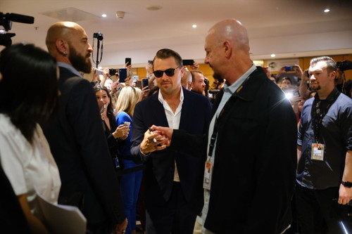 大勢の記者の前で今までベールに包まれていた本作のストーリーについて語った。タランティーノが「今までの作品の総括のような部分も無意識的に出ていた」と、過去8作品の集大成であると語る本作について、レオナルド・ディカプリオは「監督にしてみたら原点回帰なのかな。幸運にも僕らが仕事をさせてもらってるこの業界に対するラブレターなんだと思う」とコメント。