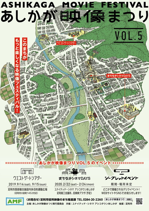 市が掲げる「映像のまち構想」(映像という視点をまちづくりに活かし、地域を活性化させる)推進の一環として、「あしかが映像まつり」は今年で5回目の開催をむかえました。年間50~60本の映像作品の撮影支援を行い、つい最近「渋谷スクランブル交差点オープンセットの建設が決定!」というニュースが大きな話題を呼んだ〝映像のまちあしかが″その動向を、処々に感じてもらえるような毎年変化に富んだアイディアを盛り込み、このまちがもっと楽しくなる映像フェスティバルを目指しています。 足利の鳥観図をモチーフとしたメインビジュアルは、全て足利出身・市内外で活躍するデザイナー鶴見裕也氏の手書き。街中で開催するイベントコンセプトを表現しています。今年は昨年に続き年複数回の開催を予定。 まずは8月28日、映像まつりに先駆けたスピンオフイベントとして、今回初開催するのが「よるの学校ドキドキ映画館」。映画館が市内に1つの足利、映画館へなかなか行かれない子供たちにももっと映像に親しんでもらいたいという思いから、市内の学校を数年かけて巡回上映する校庭上映会の実施を決断!夏休み、昼間の学校とは違うよるの学校に潜入するドキドキ感、友達と体験した校庭で映画を観るという特別な思い出が、大人になっても心に残る宝物となることを願っています。今回の会場は、創立20年をむかえる桜小学校。上映作品は『怪盗グルーのミニオン大脱走』。小学生にはお客様としてだけでなくイベントスタッフとしても参加してもらう予定です。 9月14日・15日の2日連続で開催するのは野外上映イベント「ウエストゲートシアター」。 2020年2月22日・23日・24日開催の「まちなかシネマDAYS」では、メイン会場である「ユナイテッド・シネマ アシコタウンあしかが」をはじめ、まちなかのいたるところで映画上映、毎日のように撮影が行われている〝映像のまち″だからできるロケ地巡りイベントを企画中です。早々に決定したのが、市内旧足利西高校ロケ100作品目!飯塚俊光監督・岡山天音主演の地方再生型ヒューマン・ダンスムービー『踊ってミタ』(2020年初春公開)の特別先行上映です! まちなかが映像まつり一色に染まる3日間をお楽しみください。 さらに、詳細はまだベールに隠されている「シークレットイベント」も開催予定。 また、次世代の映画ファンの増加、映像関連事業への興味促進を目的とし「U-25 STAFF」(25歳以下ボランティア)を今回も募集し、企画段階から参加、新たなアイディアに満ちたイベントを鋭意企画中です。 |