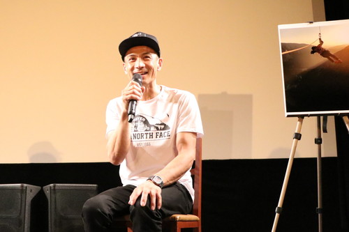 今回ゲストとして登壇いただいた平山さんは1998年と2000年のクライミングワールドカップでの優勝経験を持ち、今の日本のクライミング界の立役者としても知られる人です。最初に平山さんの経歴についての話が出た際は 平山さん:もう少し後に生まれていたらオリンピックに出られたかもしれないのに! と笑顔を見せた平山さん。 平山さん:何か聞かれてもYesかNoでしか答えられないようなシャイな青年だった と話す。その翌年からザ・ノース・フェイスのチームに加わり話す機会が増えると、 平山さん:お酒に誘っても絶対に呑まなくて。普段の生活もすべてがクライミングにまっしぐら。本当にまっすぐで穏やかな青年。 とオノルドの人柄を明かした。 昨年、オノルドが初来日した際、平山さんは彼と共に御前岩、瑞牆山、二子山の三箇所をクライミング。 その時のことについては 平山さん:机の上で方程式を解くように答えを出してから進む。 と振り返り、オノルドのことを 平山さん:怖いもの知らず、命知らずの荒くれ者のようなイメージを持っている人がいるかもしれないけど実際は数学者のよう。 と表現。 平山さん:彼は気遣いの人。気配りのできるジミーがいるだけで常に周りは安心する。今回の撮影クルーもジミーがいることで安心感があったと思う。信頼関係がないと撮れない映画だからこそジミーにしか撮れない作品。作品から人間的な部分が見えてくる。クライミングの映像表現を超えている!カメラのファインダーを覗きこめない場面が映画に出てくるのですが、あのカットにジミーの映画作りから見えてきますね。 と本作のチェックポイントもアピールした。 <平山ユージ プロフィール> |