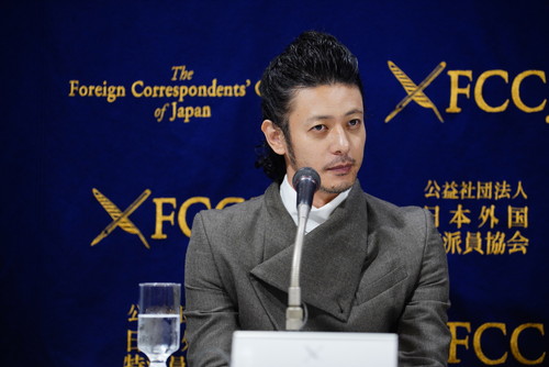 本作を観た外国特派員協会員の方々に温かい拍手で迎えられて、オダギリジョー監督が登場。