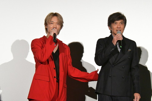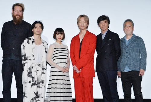 そしてキャスト陣が登壇しそれぞれが挨拶を終えると、初日を迎えた気持ちを聞かれ 綾野さん:ようやく、みなさんに作品を託すことができるなという気持ちが強いです。私たちが何かを感じて欲しいとか、何かを届けたいという私たちの主観よりも、この作品は観た方に託すことで、みなさんの中に何が生まれるかが重要だと思います。ここから『楽園』はみなさんのものになります。大仕事の最後の受け渡しができてとても嬉しいです。 杉咲さん:ユップさんの曲を聞いて感じたんですけど、撮影した日々は本当に苦しくて、その日々が走馬灯のように蘇ってきて、自分にとってトラウマのような時間もあったりして、、(笑)それでも私はこの映画を観て救われたので、ひとりでも多くの方々に観ていただけると嬉しいです。 と撮影中の気持ちを吐露しました。そして、 佐藤さん:この映画を見てみなさんの中には“楽園”という言葉を悦楽的な刺激のある場所という意味合いを持って捉える方もいると思いますが、刺激的ではなくても人がいがみ合うことなく暮らせる場所を“楽園”と呼ぶのか、それは人によって捉え方が違うと思います。そのようなことをみなさんにも映画を観ながら考えてもらえると嬉しいです。 とコメントしました。 村上さん:僕の演じた広呂は作品の中では明るいキャラクターですし、作品も重たいものですし他のキャストの方は宣伝の中でも暗い服を着てることが多いなと思っていたので今日は自分が明るい服装で盛り上げる担当だな!と思ったら、、 と綾野さんの赤い衣装を見ながら村上さんはコメントし会場からは笑いが起こりました。 ユップさん:オランダと日本の距離は遠いですが、音楽を演奏し瀬々監督の映画を通じてみなさんと絆を持つことができる素晴らしい経験をさせてもらっています。 と喜びを語りました。また、本作の主題歌である〈一縷〉を聴いたときの感想を 綾野さん:僕は映画を観終わった後〈一縷〉が流れた瞬間に大変助けられました。すべてを包み込み、掬い取ってくれて、なんとか立ち直るきっかけをくれたと思いとても感謝しています。(野田)洋次郎くんからもメールを頂いて『上白石さんの声でなければこの楽曲になっていなかった』と絶賛していましたので、彼女の声は真実が何も役に立たない時代になったなと思う瞬間もありましたけど、そんな時にあの声を聞くと真実を照らしてくれる声もあるんだなと思いました。 と楽曲の印象を語りました。 瀬々監督:“一縷”っていうタイトルが素晴らしいなと思います。“一縷の想い”という言葉のように一筋の光に繋がっていくんだなと思いますが、そのような想いを野田さん上白石さんと映画を通して一緒に共有できたのは素晴らしいと思いますし、オランダと日本は離れてはいますけど共通の情感があるから共感できたと思いますし素晴らしいです。 と本作の音楽面を支え、作品の世界観を作り上げた野田さん、上白石さん、ユップさんへの感謝を述べました。 |