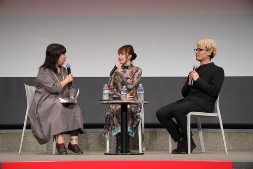 最初に司会のおだしずえさん(ラジオパーソナリティで本作にも出演)より、小島藤子さん、迫田公介監督が呼び込まれ、ご挨拶後にトークがスタートしました。