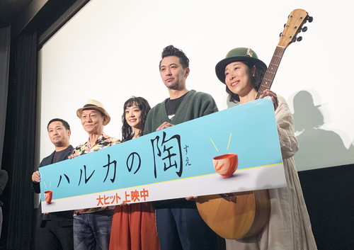 この度ユーロスペースにて舞台挨拶が行われ、主演の奈緒・村上淳・笹野高史・主題歌を担当したサボテン高水春菜・末次成人監督が登壇。作品が公開された喜びを語りました。 ユーロスペース『ハルカの陶』舞台挨拶 |