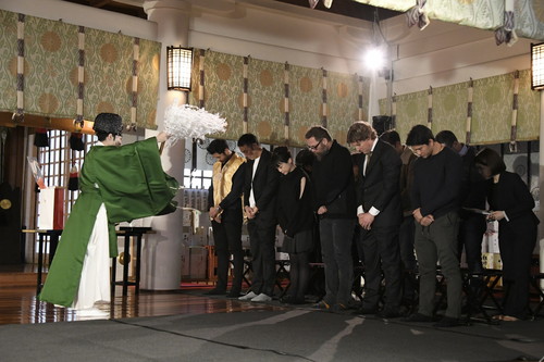 イベントと同日、日枝神社にて、登壇したキャスト&スタッフ全員勢ぞろいで、日本での撮影の安全と、作品の成功を願うご祈祷に参加しました。