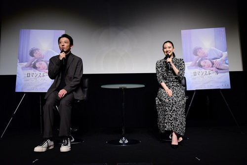 。 発表から10年を経て、同小説が映画『ロマンスドール』としてタナダ自らが脚本・監督を務める形で実写化。1月13日(祝・月)に公開記念イベントが開催され、主人公・哲雄役の高橋一生と園子役の蒼井優が登壇。MCを立てずに2人で進行を担当しつつ、観客から集められた質問に答え、結婚や恋愛観について語り合った。 『ロマンスドール』公開記念イベント |