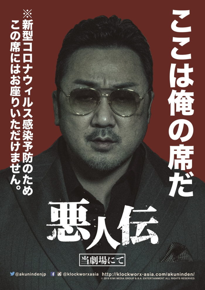今回少しでもご来場いただく観客に楽しんでいただきたいという願いを込めて、本作主演のマ・ドンソクを起用した、ソーシャルディスタンスパネルの設置が決まりました。 コロナ禍の影響により、営業自粛をしていた映画館でしたが、自粛要請の緩和を受けて、徐々に営業再開しております。ただ今までの通りの営業体制の変更を余儀なくされ、新型コロナウィルス感染予防対策を講じている状況です。 |