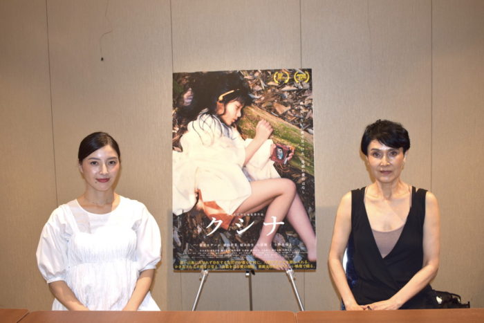 稲本:以前速水監督が助監督で入っているムービーの撮影でご一緒したんですけれど、フレッシュで、ふんわりしていて、まさかこんなに素晴らしい作品を撮れる方だとは全く思っていなかったです。ふんわりした中にちゃんと自分の表現があり、芯がある方なんだなと思いました。 Q. 女だけが暮らす男子禁制の山奥の集落の村長・オニクマ役の小野みゆきさんは、監督が写真をネットで見て、ご自身のお母様に似ているということもあり、オファーしたと聞きました。オニクマ役のオファーが来て、どう思われましたか? 小野:すんなり入れました。初めての年寄り役だったので。いつも無理をする年の役しか来なかったので、初めて等身大の役が来たと思いました。 脚本全体の感想はいかがでしたか? 稲本:読み進めるたびにワクワクが止まらなかったです。ただそれと同時に、こんなにスケールが大きいものをはたして撮りきれるのかという不安もありました。 Q. 監督は早稲田の大学院の修士制作だったんですよね? 稲本:はい。 Q. クシナ役が、クランクインぎりぎりまで決まらず、クシナ役が決まらないまま本読みをやったとお聞きしました。 稲本:撮影初日に、最後までクシナ役の郁美(カデール)ちゃんが到着していなくて、小野さんと2人でロケバスで、「来るのかな?来るのかな?」と心配していました。 小野:主役の郁美カデールさんがギリギリで決まっているので、子供(カグウ)や孫(クシナ)を心配するオニクマのように、「心配する」ということから始まりました。オニクマがやっていることと変わりなかったので、(オニクマを演じる上で)全然無理がなかったです。 (クシナ役の郁美さんが演技を今まで)やったことがないって言うから、実は監督がセッティングしている時に、ロケバスに行って、こっそりクシナと本読みをしたんですよ。そうしたら、クシナそのものだったんです。それで、「本当によかった」と思って、タタタタって現場にいる監督の元に走って行って、『クシナ、OKですから、すぐ回して大丈夫です』って言って撮影したんです。 稲本:見た瞬間に、すごく美しい少女だったので、不安も吹き飛び、逆に楽しみになりました。無理せず魅了されました。 小野:そうか、稲本さんからすると、そういうイメージなんですね。私はオニクマとして、どこか村と撮影隊の皆を見なくちゃいけないという長になっていて、私はクシナだけを見ていたんじゃなく、皆を均等に見ていたんです。 Q. 稲本さん演じる人類学者・蒼子が入ってきた時は、「敵が村に入ってきた」という感じでしたか? 小野:敵という見方がもしかすると足りなかったかもしれないです。 Q. オニクマは最初から協力的でしたね? 小野:そうです。見つかってはいけない集落が見つかっちゃったのですが、長として、逆にジタバタする方がまずいという計算が働くんです。特に敵対心を持たずに、淡々とセリフを言うようにしました。 Q. 蒼子は後輩の原田恵太と村を探し当てるという設定ですが、演じた小沼傑さんとの共演はいかがでしたか? 稲本:1番印象に残っているのが、富士の樹海で登山中に夜中にテントを立てて野宿をするというシーンなんですけれど、警察の方に集団自殺をしに来た団体と間違えられて、監督が「撮影なんです」と説明していました。 あと、小沼さん演じる原田に「村を乱すな」と怒るシーンがあるんですけれど、その時の刃向かう彼の目つきがとても生意気で、すごく原田だと思いました! 小野:小沼君は出番を待っている間にいつも衣装を縫っていました。本作では、着物を着物として着ないで、ちょっと崩して着ているので、現場でさっくり切って縫わなくちゃいけないんです。小沼君が「僕、ファッション系の学校に行っていたんで、縫えますよ。やりましょうか?」と言った時に私もいました。村のシーンでは、他に男の出演者がいないんです。控室が1つしかないので、小沼君は、配慮して、隅っこにいました。 Q. オニクマの娘は、14歳の時にクシナを生んだカグウです。カグウを演じた廣田朋菜さんとのシーンはいかがでしたか? 小野:とても不思議な雰囲気があるのよね。子供のまま大人になったようにも見えるような、不思議な感じなんです。蒼子と対照的という意味で、女優さんとしていい意味で、若干のやさぐれ感があるんです。役柄の中では、オニクマが厳しいから、それに反発をしなくてはいけないので、気持ちから入ってきていたところがあるんですよね。「ここから出たい」「うんざりしている」というのが少し見えるんです。そういう意味では面白かったです。現場の会話の中では1番素を出さなかったかもしれないです。素が見えづらい、ちょっと暗い感じで。でもリハの時はそうではなかったようにも思うので、やっぱり役を作ってきたんですね、女優さんだから。カグウにしか見えなくて。非常にやりやすかったです。 稲本:対面すると、小野さん同様に彼女も強い目力の持ち主です。2人と闘う