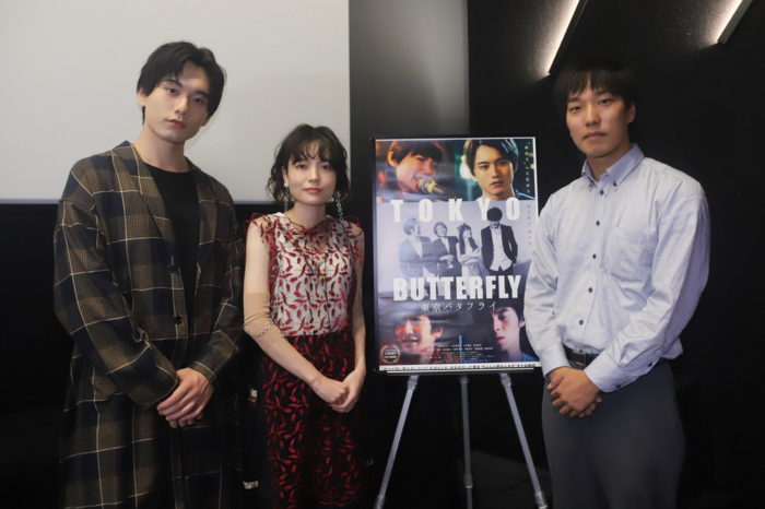 白波多は、このたび初共演となった水石の印象を尋ねられて「イケメンだなと思いました」としみじみ。続く水石が、白波多の印象を「とても空気感がある方だなと思いました。歌うと力強いし、お芝居も目の前に安曇がいるという感じだった。僕自身引っ張っていただきました」と真面目にコメントすると、すかさず白波多が「さっきはふざけてすみません。水石さんはとてもステキな青年で。引っ張っていただきました」と返答。その様子に水石が思わず笑顔になるなど、和気あいあいとした様子を見せる二人だった。 また二人の印象を尋ねられた佐近監督。まずは水石について「亜飛夢くんはオーディションをやりました。書類とかを含めると100人くらい応募してくださったんですけど、その中で亜飛夢くんが抜群によかった。亜飛夢くんが入ってきて、すぐに仁が来たと思いました。彼しかいないなと思ってお声がけさせていただきました」と述懐。水石も「オーディション会場がめちゃめちゃ地元だったんで、やったと思ったんですが、でも気を抜いちゃいけないなと思って頑張りました。なんとか受かったので良かったです」と笑顔を見せた。 続けて白波多について「安曇はアーティストで音楽やられている方といいと思って。プロデューサーがYouTubeにこんな人がいるよということで50人のリストを作ってくれたんです。49人見ても、安曇役が見つからなくて。どうしようかと思ったんですが、プロデューサーが『50人目を忘れていました』と言って。カミンさんの名前を付け加えたんです。それが『バタフライ』のMVだったんですが、曲もいいし、彼女はアンニュイで、何を考えているのか分からない表情だった。とにかく彼女を撮りたいと思いました。それがなかったら一緒にできていなかったですね」と述懐。それを聞いた白波多も「人生が変わっていましたね。それも運ですね」としみじみ付け加えた。 「理想と現実」をテーマとした本作にちなみ、自身が感じる「理想と現実」について尋ねられた登壇者たち。まずは白波多が「わたしはずっと、理想の自分が、自分だと思い込んできたんです。そこにいけないことがおかしいと思って、自分を責めていました。それに気付けたのが最近で。現実と理想があるということが分かったら、それとの距離の取り方が分かってきた。できないときはできないし。そう考えたら楽になりました。できないときも、それがいい悪いではなくて、全部味わい尽くして死ねればいいですね」と心境の変化を語る。 そしてそれを聞いていた水石も「今、聞いていると理想って難しいなと思いましたね。いろんな業界でトップと呼ばれる人でも、今の自分が理想ですと言える人がいるのかなと。でも僕も理想とか目標があって。そこに届いていない時はやっぱりまだ努力不足だと思うし、上には上もいますし、あとはご縁もあると思います。でもなんかこれまでの人生で無駄ってなかったと思うんですよね。理想に近づくために生きているんだと思います」とコメント。さらに「これまで出会った作品もいい作品ばかりなんで。自分で言うのもなんですが、ありがたいです。出会うべくして、出会っているんだろうなと思って、やらせていただいています。もちろん『東京バタフライ』もそうです」と付け加えた。 この日のイベントでは不思議な存在感を見せる白波多に対して、明るく受け答える水石の姿が印象的だった。30分のイベントは終始和やかな雰囲気の中で幕を下ろした。 |