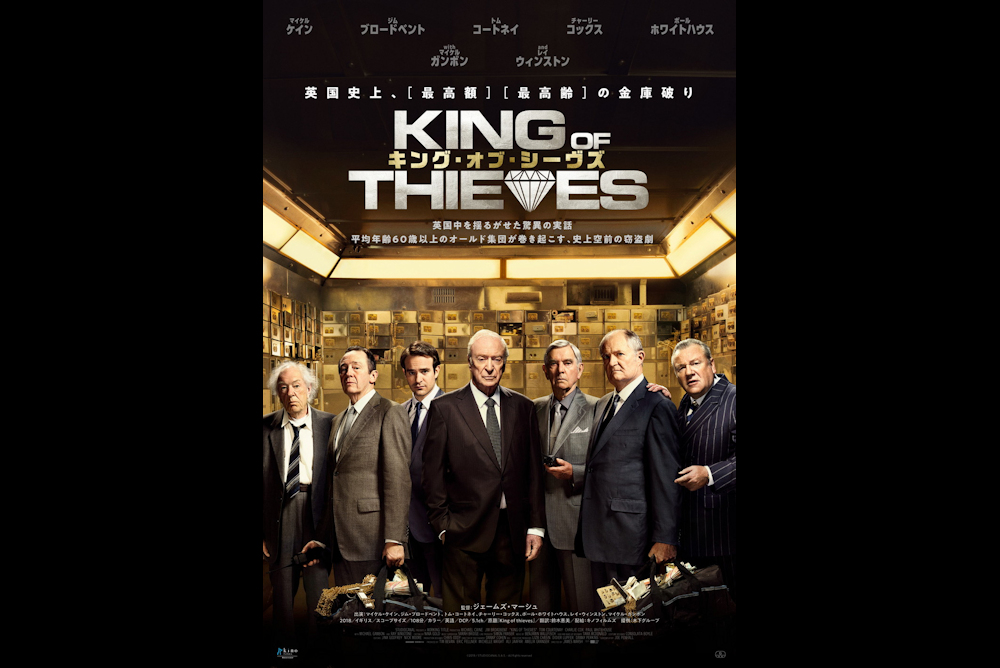 出演:マイケル・ケイン、ジム・ブロードベント、トム・コートネイ、チャーリー・コックス、ポール・ホワイトハウス、レイ・ウィンストン、マイケル・ガンボン 2018/イギリス/スコープサイズ/108分/カラー/英語/DCP/5.1ch/原題『King of thieves』/翻訳:鈴木恵美/配給:キノフィルムズ