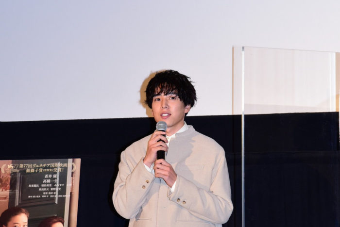 この日は、ヴェネチア国際映画祭の銀獅子賞のトロフィーも生の観客の前で初めてお披露目された。「(トロフィーを)目の当たりにすると、ささやかながら映画の歴史にこの『スパイの妻』が名を刻んだんだなと実感がわいてきます」と喜びを口にした。