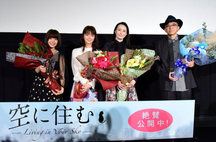 『EUREKA ユリイカ』、『東京公園』の青山真治監督が7年ぶりに長編映画『空に住む』を撮り、その公開を記念して、10月24日(土)東京・新宿の新宿ピカデリーにて舞台挨拶が行なわれました。![]() 登壇したのは青山真治監督をはじめ、主演の多部未華子、共演の岸井ゆきの、美村里江。3人の女優陣の相手役を務めた岩田剛典、大森南朋、鶴見辰吾は欠席でしたが、サプライズでビデオメッセージ&リモート花束のプレゼントが行われました。 ![]() 映画『空に住む』公開記念舞台挨拶 日時:10月24日(土) 場所:新宿ピカデリー 登壇者:多部未華子、岸井ゆきの、美村里江、青山真治監督 |