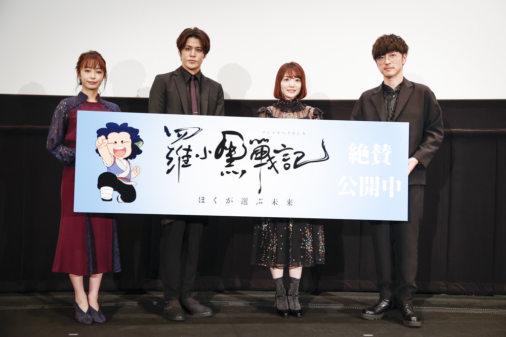 本作で花の妖精としてアニメ声優に初挑戦した宇垣美里が務めるMCの呼びかけにより登壇したキャスト。本作はコロナウイルス感染防止のため一人ずつアフレコ行ったため、この舞台挨拶で初めて3人が揃うことになった。感想を聞かれた花澤は「なんか私人見知りしちゃって!(笑)ドキドキしちゃって!(笑)さっきも控室で櫻井さんに“フーシーのあの最後のとことかよかったです”とかガチガチになりながらしゃべっちゃって、なんか気持ち悪いな私って(笑)」宮野は「特に会ってた三人だったからね(笑)不思議な感じがしましたね」 フーシーを勝たせてあげたかった! 『羅小黒戦記(ロシャオヘイセンキ) ぼくが選ぶ未来』は中国のアニメ監督、アニメーターのMTJJ及び寒木春華(HMCH)スタジオが制作したアニメ作品。2011年3月17日からWEBアニメシリーズが動画サイトで公開された後人気が上昇し続け、中国アニメを代表する作品まで成長。その後劇場版が制作され、中国国内での興行収入は3.15億 人民元(約49億円)を記録し異例の大ヒットとなっていた。字幕版を初めて観た感想を聞かれると、花澤は「本当にすっごいクオリティですよね!バババババって!本当にどうやって作ったんだろって。あとはギャグシーンの間とかも素晴らしくてね、どうやって演じようかなって思ってました」、櫻井は「やっぱバトルシーンがね!ムゲンが強いからな~(笑)私はフーシーを勝たせてあげたかったんですよ(笑)珍しく必死な櫻井でした」と答え、宮野は「日本のアニメが海外に影響与えてんのかな~って、勝手に思ってて。それに声優さんのキャストの演技も素晴らしくて、あとは原音のキャストのバトルシーンの声にあれ俺の声似てない?とか思ったりしてました(笑)」 とにかくシャオヘイがかわいい! 吹替版を見た感想を聞かれると、宮野は「とにかく花澤香菜のシャオヘイがかわいすぎる!」と答え、花澤は「シャオヘイは本当にかわいい!ハードルが高かったんですよ~!(笑)」と、演じる苦悩を打ち明けつつ、宮野は「あとは櫻井さんがよう立ちはだかるな~って(笑)」と話し、櫻井も「本当にね。いつもうまくいかないんだけど(笑)」と共演が多いキャストならではの話で会場を盛り上げた。さらに花澤は「吹替と言えば宇垣さんもね~!私は宇垣さんのこと大好きなんですよ!シャオヘイがはじめて人間の世界で生き生きと生きている妖精の役なので宇垣さんにピッタリだな~って」と話し、これに対し宇垣は「もうその言葉だけで…!冥途の土産にします(笑)」と感無量。 花澤と宮野のペアはいつも不幸に!? おすすめのシーンを聞かれた宮野は「やっぱラスト!師匠~って!もう泣けちゃうよ。あのラストシーンでシャオヘイが顔をうずめたまま終わるのが新しいなって思って、それもまたいいなって思いましたね」と答え、花澤は「戦闘中にムゲンがシャオヘイの乱れた襟をパッパッって直すところが好きで、あのやさしさがたまらないなって」と答えると、一同「わかる~!」と。吹替の時に気を付けたことを聞かれると、花澤は「シャオヘイは物語の中でどんどん価値観が変わっていく存在なんですけど、自分でちゃんと選んで行ってるんだぞっていうところは意識しましたね」、宮野は「ムゲンは本当に優しい人なんですけど、それを見せないというか平穏を求めるがための自己犠牲だったりとか、そこに対してブレずに向かっていける精神力とか温かい感情がムゲンにあるなって感じていましたし、あとは香菜ちゃんとペアになるといつも不幸せになるんですが(笑)今回は幸せ終われてよかったなって思いました!」と話した。櫻井は「私はそれを眺めていましたが、フーシーはシャオヘイにわかってもらおうと演説するシーンがあるんですけど、その結果シャオヘイにでっかい疑問を投げかけられてしまうシーンがあるんですが、その辺りのシーンはすごく印象に残っていますね」と答えた。 本作がシャオヘイの成長物語であることにかけ、最近成長したエピソードを聞かれると、花澤は「いやー本当に衰退ばっかだなって(笑)だって筋肉痛が二日後に来るんですよ!(笑)でも、逆に次の日には来ないぞという余裕(笑)そのポジティブさは成長!(笑)」と答え、宮野は「僕は本当にこの状況の中で、エンタメがどうなるんだって。僕も色々な講演が中止になったりとかしていたんですが、最近二人芝居というものをやりまして!そこでこんなにセリフが覚えられるんだ!とか、これを成長だなってこれを経験して強くなったなって思いますね」、櫻井は「最近ウイスキーを嗜むようになりまして。昼間っから飲んじゃったりとかして(笑)昔は全然わからなかった微妙な味が楽しめるようになったりとかは成長ですかね(笑) モノマネでシャオヘイのセリフ披露で会場大盛り上がり!! オリジナル版でシャオヘイ役を務めた山新(やましん)からメッセージが。 「吹替版キャスト陣には私の大好きな声優さんばかりで、吹替版のシャオヘイの鳴き声はなんと私の声を使っていただいて