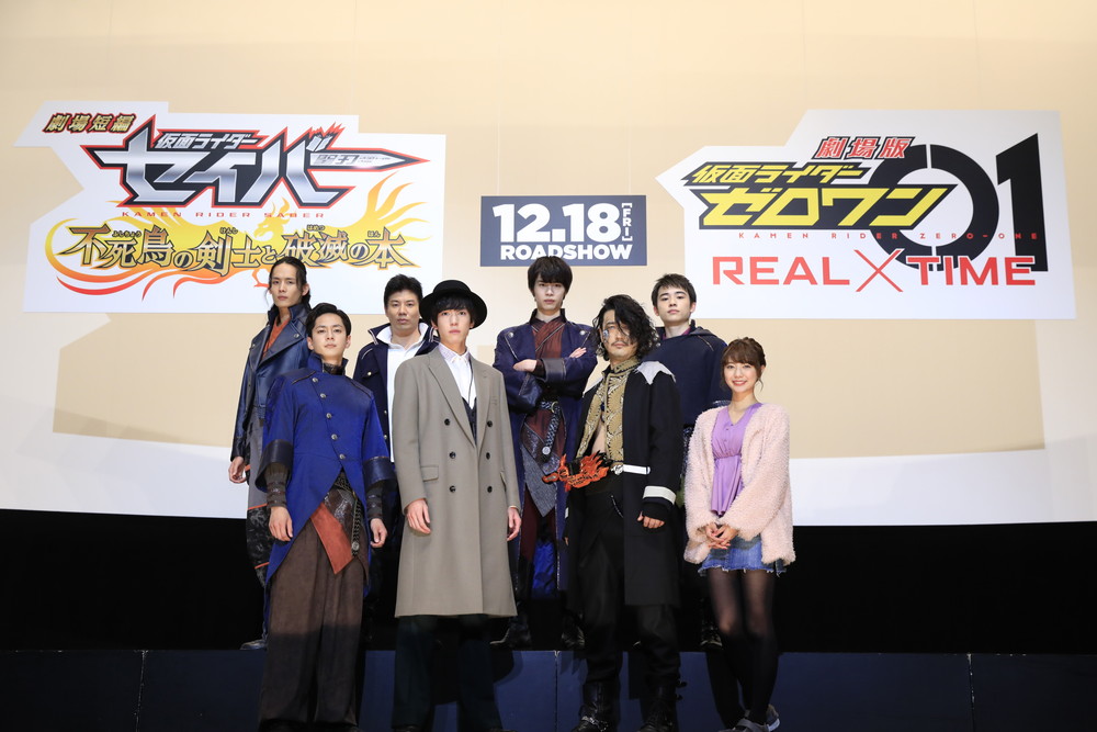 「令和仮面ライダー元年」の第1作目として華々しくスタートした「仮面ライダーゼロワン」。 8月の最終回は、劇場版へとつながる気になる展開で、ファンの注目度が下がることなく、早4ヶ月が経ちました。そして、令和ライダー2作目「文豪にして剣豪」というテーマで本と剣をモチーフにした「仮面ライダーセイバー」が9月からスタートし、個性豊かな仮面ライダーに注目が集まっています。その両作品の劇場版が『劇場短編 仮面ライダーセイバー 不死鳥の剣士と破滅の本』、『劇場版 仮面ライダーゼロワン REAL×TIME』として、豪華2本立てで12月18日(金)より公開となります。 そして、この度、『劇場短編 仮面ライダーセイバー 不死鳥の剣士と破滅の本』、『劇場版 仮面ライダーゼロワン REAL×TIME』のレギュラーキャスト、ゲストキャスト、監督総勢19名を迎えての完成報告会が12月10日(木)、丸の内TOEIにて行われました。 『劇場版 仮面ライダーゼロワン REAL×TIME』 |