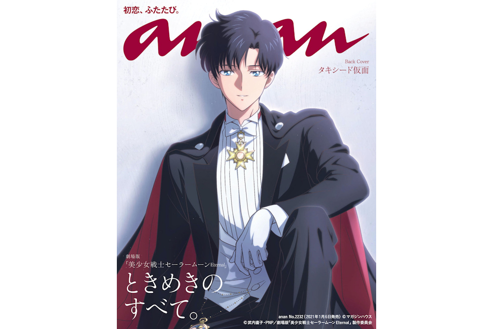 1991年から1997年に渡り少女漫画雑誌「なかよし」(講談社)で連載された武内直子作の「美少女戦士セーラームーン」。連載開始から圧倒的な人気を集め、単行本の発行部数は世界で累計3,000万部にのぼり、当時の女の子たちを夢中にさせ、社会現象を巻き起こしました。1992年から1997年にはTVアニメシリーズも放送され、日本のみならず40か国以上の国で放送され、いまなお世界中で愛されるコンテンツとなっています。25年の時を経て、2021年に劇場版「美少女戦士セーラームーンEternal」が前編1月8日(金)後編2月11日(木・祝)で2部作連続公開致します!先行して実施された試写会では、「控えめに言って、最高だった…」「90年代アニメの良さは大前提にありつつ、25年の時を経た映像美。」「みんなの変身シーンが流れてきた瞬間に涙が…」「早く後編も見たい!」など絶賛の声が相次いでいます!そんな劇場版の公開を記念して、1月6日(水)発売マガジンハウス社「anan」No.2232で本作の特集とタキシード仮面がスペシャルグラビアでバックカバーに登場することが決定しました!![]() 劇場版「美少女戦士セーラームーンEternal」の公開を記念して、1月6日(水)発売「anan」No.2232にて、劇場版「美少女戦士セーラームーンEternal」特集&タキシード仮面のスペシャルグラビアが決定!今回特別に描きおろされたタキシード仮面の、優しく微笑みかける表情は「anan」らしい大人びた雰囲気あふれるグラビアとなりました!当時の女の子が〝誰もが一度は恋をした″タキシード仮面にふたたび恋をしてしまう人が続出すること間違いなし♡ さらに、特集ページでは「ときめきのすべて。」ときめき研究と称して、劇場版のときめきポイントを各場面と共に紹介!また、スーパーセーラームーン/月野うさぎ役三石琴乃とフィッシュ・アイ役の蒼井翔太のインタビューも掲載!三石琴乃だからこそ語れる「美少女戦士セーラームーン」の制作秘話、月野うさぎというキャラクターの魅力は必見です!蒼井翔太が打ち明ける大好きな作品に参加できたからこその喜びや葛藤など、作品に対する思いにも是非注目してください! |