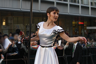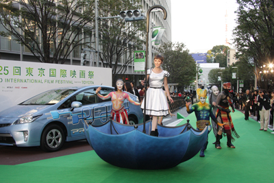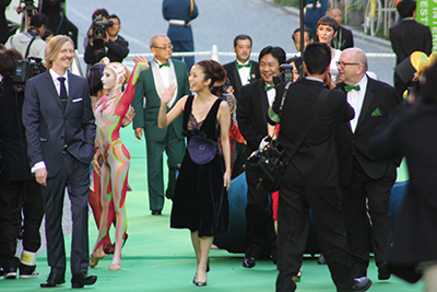 アンドリュー・アダムソン監督、ジャック・メテ(製作総指揮)、エリカ・リンツ(主演女優)、“シルク・ドゥ・ソレイユ”パフォーマー、上戸彩さん(オフィシャルナビゲーター)、蒼山日菜さん(切り絵作家・ポスターデザイン)がゆっくりと250mのグリーンカーペットを歩かれました。