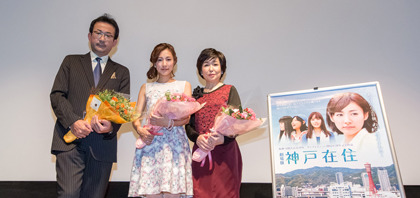 2015年1月17日(土)より公開の『劇場版 神戸在住』の完成披露試写会が、オールロケーションを行った街、シネ・リーブル神戸で行われ、主演の藤本泉さん、竹下景子さん、白羽弥仁監督が舞台挨拶に登壇しました。