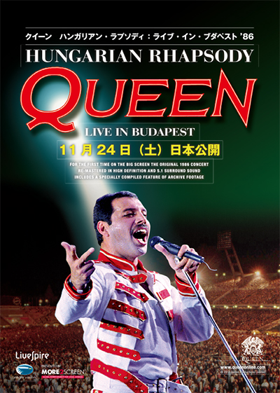 日本公開の11月24日は、おりしもフレディの命日です。 伝説のロックバンド・クイーンの貴重で素晴らしいライブを、ぜひお近くの劇場でご堪能ください。 《上映劇場》 ※チケットは各劇場の窓口やインターネットなどで販売されます。