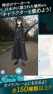 映画館情報やチケット情報はもちろん、今後のSAOの予定も簡単にチェックできたり、スマートフォンの位置情報を利用して、日本中の特定の場所や、特定のマーカーからAR(拡張現実)を使ってキャラクターやモンスターを手に入れることができます。