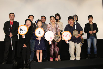 その東京プレミア上映がテアトル新宿で行われ、伊東蒼、安藤サクラ。そして新藤監督が登壇。そして沖縄&西洋音楽のプロが集結!映画のテーマとなった名曲《島々清しゃ》を伊東蒼フルート初お披露目!! 安藤サクラは自前の三線で生演奏で観客を和ませました。 『島々清しゃ』プレミア上映会舞台挨拶 |