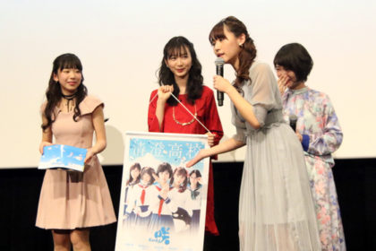 主演に抜擢された浜辺さんは、オファーされた時の気持ちを![]() 浜辺さん:主演を務めるのは嬉しかったけれど、人気コミックが原作という事で不安もありました。でも撮影中は皆に支えられて楽しく撮影を終えることができました。 麻雀の実力派でけしからん巨乳役 撮影中の楽しかったことを聞かれると・・・ 古畑さん:夜の、ガールズトークが。楽しかったですね。浅川ちゃんが一番ぶっ飛んでいて、その内容を言ったら浅川ちゃんへの営業妨害になると思う。 とぶっちゃけ!総勢20名の若手女優を束ねた監督は・・・ 監督:うちの娘の世代が20人。スタッフと協力しながら、乗り切りました! と吐露。 |