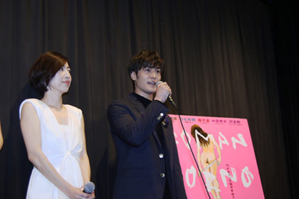 町井さん:神社のシーンは、初めての絡みで。僕の逃げ腰具合が情けなくって。監督に「メスとオスしかいないんだよ!がるるるるるていけ!」って言われました!あと、大変だったのは足場の悪いところでの駅弁ですね。 と、告白。 さらにMCさんの心を縛りあってるお二人の話と言うことで・・・。皆さんはSですかMですかとの問いに。 飛鳥さん:私は。。。Sだと思います。何でも自分で決めたがりでなので。 山口さん:Mですかね。苦しむ時間が好きです。結果。・・・・快感になる。そのプロセスが好きなので。 と、今回の映画の役柄とは逆。