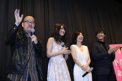 大きな拍手に迎えられたキャストと監督。