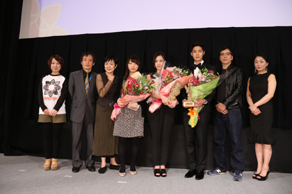 クリエイターズ・ファクトリー表彰セレモニー 日時:3月28日(木) 14時00分~ 会場:沖縄コンベンションセンター シアター2 (沖縄県宜野湾市真志喜4-3-1) 審査員:奥山和由、板尾創路、新藤風 今回の受賞作品について聞かれ、板尾さんは、「どの作品もほんとうに素晴らしくて感激しました。とくに『おだやかな日常』は、演技が素晴らしくて、すごくリアルな部分に胸が痛くなりました。これをはじめとして、毎年あらたな才能が見つかっていければと思います」と、新藤風さんは「力のこもった、表現方法がまったくことなった作品に各賞があたえられ、発表できることを光栄に思います。『おだやかな日常』は、低予算ながら丁寧に描いたすばらしい作品で、多くの方に観てもいただきたいと思いました。『コーポにちにち草のくらし』は、かわいらしい作品で、ぜひ他の作品も観たくなりました」とコメントしました。