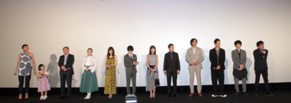 観終えたばかりのお客様の大きな声援と拍手の中監督とキャスト12名が登壇!