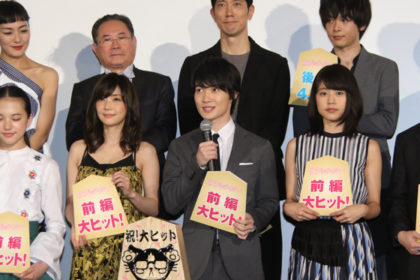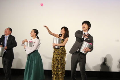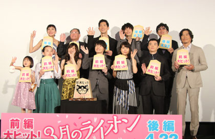 『3月のライオン』【前編】が、3月18日(土)についに公開となりました。 その公開を記念して、初日舞台挨拶が行われ神木隆之介さん、有村架純さん、倉科カナさん、染谷将太さん、清原果耶さん、佐々木蔵之介さん、豊川悦司さん、前田吟さん、板谷由夏さん、中村倫也さん、新津ちせさん、大友啓史監督の超豪華キャスト・監督が登壇! もう一つの映画のテーマである“闘い”にかけ、登壇者が2チームに分かれ、とっても楽しそうにチーム対抗玉入れ合戦が行われました! 映画『3月のライオン』前編初日舞台挨拶 |