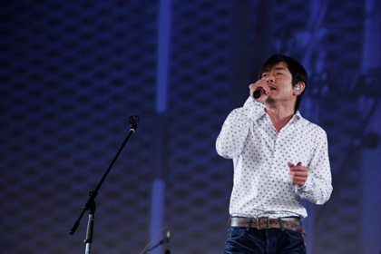 THE BOOMの演奏は【星のラブレター】で幕を開け、【風になりたい】【神様の宝石でできた島】などメジャーな曲が続いた後、「沖縄と関わるようになって20年になりますが、音楽やいろいろな体験をして勉強させていただいた。沖縄の人じゃなくても沖縄を愛して移住したり、沖縄を離れて県外に住んでいてもエイサーの練習をしたり、どこにいても沖縄のことを愛して、沖縄の未来が明るくなるように願っている人がいるわけです。そういう人たちをどう呼ぶのか、と考え、沖縄と関わって20年目のメッセージがこの曲です」と、【シンカヌチャー】(沖縄方言で『仲間・血縁ある人』)を、琉球國祭り太鼓のメンバーと披露しました。