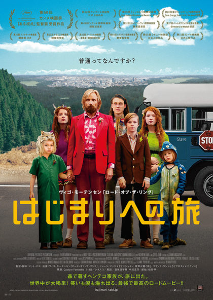 映画『はじまりへの旅』 物語・・・ 「普通ってなんですか?」 ベン・キャッシュ(ヴィゴ・モーテンセン)と6人の子供たちは、現代社会に触れることなくアメリカ北西部の森深くに暮らしていた。父仕込みの訓練と教育で子供たちの体力はアスリート並み。みな6ヶ国語を操り、18歳の長男は名立たる大学すべてに合格。しかしある日入院していた母・レスリーが亡くなり、一家は葬儀のため、そして母の最後のある“願い”を叶えるため旅に出る。葬儀の行われるニューメキシコまでは2400キロ。チョムスキー※は知っていても、コーラもホットドッグも知らない世間知らずの彼らは果たして、母の願いを叶えることが出来るのか…? (※ノーム・チョムスキー=アメリカの哲学者、言語哲学者、言語学者、社会哲学者、論理学者。) |