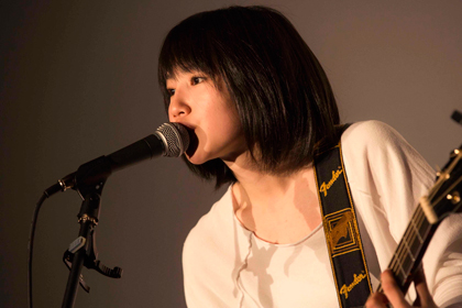 「この映画の主題歌のお話を頂いたとき、とても嬉しかったです。映画の中だけじゃなく、普通に過ごしていてもその時の”たった一言”で何かが大きく変わってしまうんじゃないか、というのが映像を見させて頂いたときに一番に出てきて、凄く自分自身とリンクする部分があったので、この言葉をキーワードにして書きました。1つ1つの言動で人の心は簡単に動いてしまう。この世で何よりも怖いのは”人”なんだなと感じました。」 ギターのピックを握ると凛とした表情となり、心の葛藤や感情のゆらぎをメロディにのせ、主題歌「Don’t Cry」 7/10リリース(2ndシングル)と劇中歌「ゆれるユレル」 4/17リリース(1stシングル)の2曲を披露し、会場からは拍手が沸き起こりました。