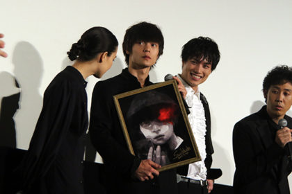 そして舞台挨拶も終了間近を迎えたところで、登壇者へのサプライズプレゼントが!![]() なんと原作者の石田スイ先生による、窪田さんをモデルにしたカネキの描き下ろしイラストが突然お披露目された。窪田さんをはじめとするキャスト陣も、ハイクオリティなイラストに大興奮。 石田先生が多忙な連載生活の中、なんとかジャパンプレミアまでに完成させたことを聞くと、 窪田さん:感謝の言葉しかないです!