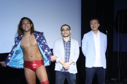 黒潮さん:まさかーでしたよ。演技やったことないのに。 監督:でもリングで毎回演じてるから大丈夫でしょ。プロレスって選手が作り上げてるんだなと思いました。リング上で僕らが観たいものを作り上げていく。その点は俳優が見習わないと。 と、ほめる監督に 黒潮さん:僕はプロレス広げていきたいだけですから。 と、回答。 演技指導は 監督:リハはやりました。上手でしたよ。瑛太さんがレスラーに影響受けていましたね。 黒潮さん:瑛太さんたち、単純にカッコいいと思いました。(監督:素人みたい!)・・・いろいろへこむ部分はありましたけど。勉強になりました! 監督:黒潮さん、カッコいいです。最後のカットに入れたくて入れました。お客さんを盛り上げることを考えてくれていて、映画もお客さんが盛り上がってくれることが全て。イケメンさんみてて青春突っ走ってる感じでいいですね。 『リングサイド・ストーリー』 10月14日 新宿武蔵野館、渋谷シネパレスほか全国公開です。