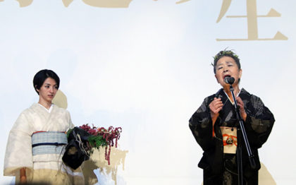 ここで朝崎郁恵さんがスペシャルゲストとして、花束を持って登壇。満島さんに贈呈。