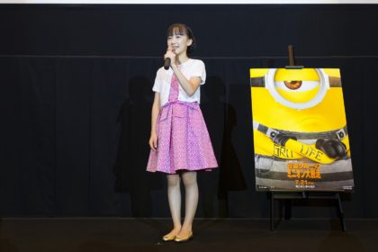 芦田さん:みなさんすごく暑いのにMINIONS RUNに参加してとっても盛り上がっていただいて、オープニングイベントに出演できてとっても嬉しかったです! と喜んだ様子で語りました。 1作目でのキャンペーン以来、7年ぶりの福岡の芦田さんですが、 芦田さん:私はイチゴが大好きで、福岡はイチゴのイメージがあったのですごく楽しみでしたね。当時は宮崎県にもキャンペーンにも参加したのですが、宮崎のマンゴージュースを飲んでとてもおいしかった記憶があります。 と可愛らしいエピソードを披露。 また、『怪盗グルー』シリーズでアグネス役を演じるのも7年目となる芦田さん。“本作でのアフレコを自己採点すると?”という問いには 芦田さん:もちろん、100点です!ちゃんと皆さんに観ていただけるようにとっても頑張りました。 と自信満々に語るプロ意識に、会場からは拍手が!! 芦田さん:わたしは動物を見るとテンションが上がりますね。動物の中だと、犬が一番好きなのでとっても癒されちゃいます。 とアグネスとの共通点を語りました。 最後に、観客の皆さんへ 芦田さん:最後まで楽しんでいただける作品だと思うので、楽しい気持ちで観てください。ミニオンもとってもかわいいですよ! とコメントを寄せ、大歓声に包まれた舞台挨拶は和やかな空気に包まれたなか幕を閉じました。