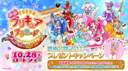 そして、タイアップでは『映画キラキラ☆プリキュアアラモード パリッと!想い出のミルフィーユ!』の公開を記念して、8月1日(火)~8 月31日(木)の期間中、「映画公開記念!プレゼントキャンペーン」も開始いたします。