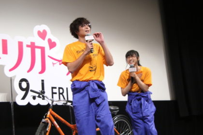 「100回泣くこと」などで知られる人気作家の中村航原作の本作は、琵琶湖で行われる年に1度のコンテストに向け、そのすべての青春と情熱を賭けて挑む若者たちの姿を描いています。 今回のイベントでは、「人力飛行サークルTBTで目標に向かって一生懸命取り組む姿が描かれている」本作にちなんで、日ごろ部活動を頑張っている150人の女子高生を“頑張りガール”としてご招待! さらに、SPゲストとして、ひこにゃんも登場! |