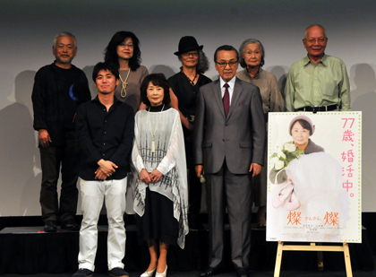 婚活しようと決意する77歳の主人公を演じた吉行和子さんや、共演の宝田明さん、そしてシニアの劇団員で構成されるさいたまゴールド・シアターの劇団員、そして本作で長編映画監督デビューを飾った外山文治監督の合計8名が登壇する、大変賑やかな舞台挨拶となりました。