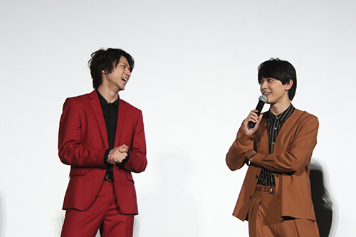 と、言うカットはほんの一瞬!ダーリオファンは見逃さないように! 山田さん:友一が言いやられて、久保田君に攻め立てられた後の顔。・・・そして、手を握った瞬間。男の友情が握った手でわかるんです。凪ちゃん喜んじゃう かなり根本さんはマニアックな視線から 根本さん:最高です。友一が手をさしだすところと。隠れてる天智が可哀そうで可愛いのが弱ってるのがいいなと。 監督:僕も久保田さんと同じシーン。完全オリジナルシーンなので。吉沢くん、山田くん、久保田さんの演技に圧倒されました。 原作にないシーンは劇場で! |