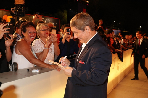 その後レッドカーペットでは、映画祭最終日の上映にも関わらず、異例の数のお客さんが会場に詰めかけ、大熱狂で迎え入れられた監督は、自らファンの元へ駆けより、写真撮影やサインに応じ、ベネチアのファンとの交流を楽しみました。![]() ![]() そして、待望の本作の世界最速上映となったクロージング上映後には、2階席に座る監督へ向けて大喝采のスタンディングオベーションが送られ、監督も立ち上がり笑顔で手を振って応えました。鳴り止まない拍手と歓声は、監督が立ち去った後も数分間に渡って続き、大盛況でワールドプレミアを終えました。