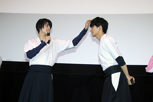 作品、弓道のこと・・・そして、壁ドン、あたまポンポン、バックハグを男子同士で生披露!池田イライザ「悪くない。でも、こう言う(BL)映画じゃないからね!」と。最後には劇中の弓道の型を教えるシーンを池田さんと中尾さんで再現するなどかなりプレミアムなイベントとなりました! 『一礼して、キス』 |
