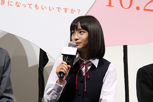 生田斗真さんと広瀬すずさんの初共演作「先生!」。 会場およそ150人、制服姿で集まる女子中高生らが抱えるリアルな恋のお悩みに答える、恋愛応援スペシャル試写会イベントが行われ、ヒロインの響を演じた広瀬すずさん、響の親友、浩介を演じた竜星涼さん、浩介とともに響の親友である千草を演じた森川葵さん、響に密かに想いを寄せる藤岡を演じた健太郎さんらが、劇中で着用した制服を来て登壇! そして、健太郎が女子高生のリクエストで・・・ 映画『先生! 、、、好きになってもいいですか?』 |