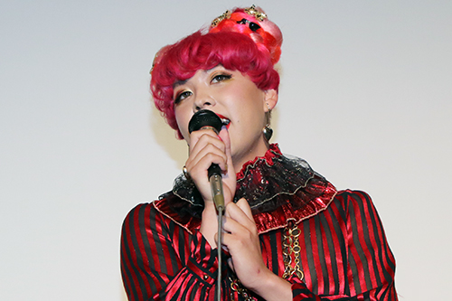 ぺえさん:映画のピエロを意識してクラシカルにしました。この映画に出てくるピエロはクラシカルなの。私似てるんですよ!この仕事を貰ってから、予告とかを見ると似てるな、と。似てるからキャスティングされたのかな?映画見てから私を鏡で見ると(ピエロに見えて)ウワッ!ってなる! この自虐ネタには、笑いが!! 週に2~3本もホラー映画を観るほどのホラー好きだそうですが・・・・