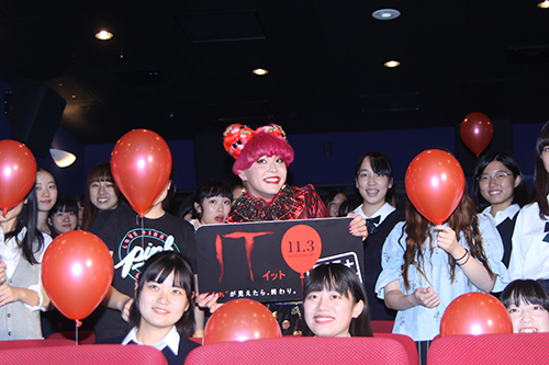 世界では公開4週目を迎えホラー映画史上・興行収入No.1に躍り出たスティーヴン・キングの小説を映画化した『IT/イット “それ”が見えたら、終わり。』が世界に恐怖のピエロ旋風を起こしていますが・・・いよいよ11月3日(金・祝)より日本でも公開となります。![]() そして、内容からR指定となった本作。R指定映画初体験してもらおうと15歳以上の女子中高生限定で試写会を実施! そして・・・・上映前にピエロ風コーデのタレント“ぺえ”さんが登壇!彼女らからの恐怖質問に克服法を伝授しました! 『IT/イット “それ”が見えたら、終わり。』女子中高生限定試写会 |