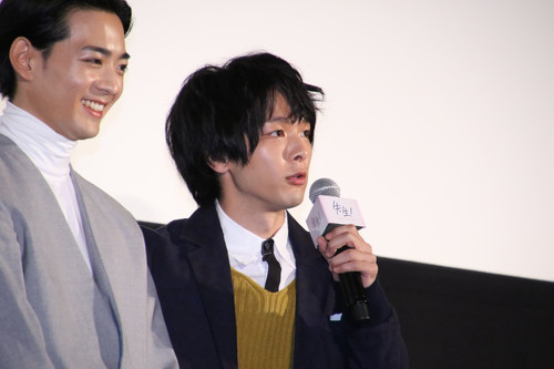 生田さん:いよいよ公開初日を迎えました。本当に多くの人に届けばよいなと思っています。 との生田さん他からの挨拶から始まったイベント。 中村さん:日本で一番かっこよい生田斗真が、日本で一番色気のある教師を演じています! と、よいしょに苦笑いもうれしそう。 三木監督:公開初日にありがとうございます。楽しんでいただけましたか? との問いかけに大きな拍手で答える観客。 |